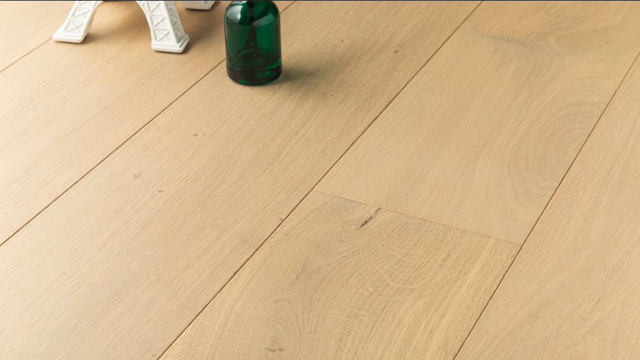 The Ultra collection of 7-1⁄2” engineered oak flooring comes in a light brushed finish. Ultra is preferred for its clean look and neutral colors.